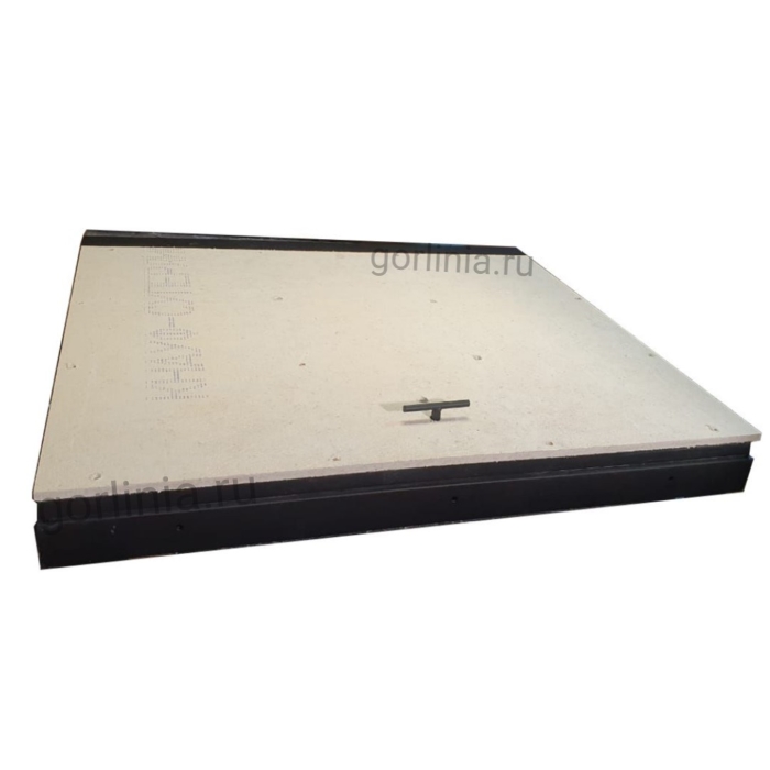 Эту модель можно ставить даже после ремонта, когда осталась дыра в полу, выложенная керамогранитом до торцов плиты, потому что дверь по трем сторонам опирается на раму из профиля, совпадающую с периметром отверстия в полу.