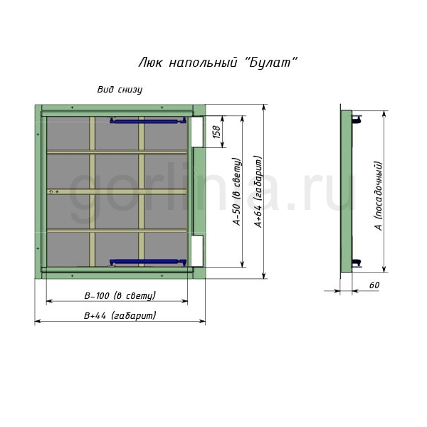 Заказная конструкция с подъемным механизмом по стороне 600 и удобным световым окном 550*700 для спуска по лестнице в погреб.
