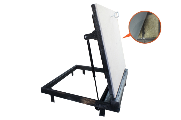 Рама без наличников выставляется в существующем отверстии 97*60 см с допусками, крепится в перекрытии через вертикальные пластины даже когда Ваш ремонт закончен и пол выложен керамогранитом или настелена ламинированная доска.