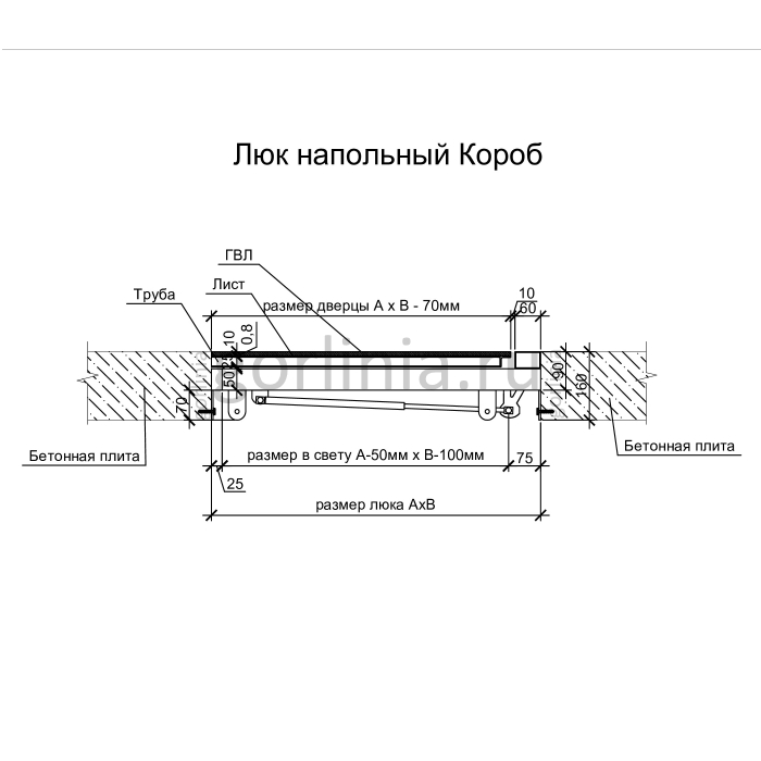 Рама без наличников выставляется в существующем отверстии 67*100 см с допусками, крепится в перекрытии через вертикальные пластины даже когда Ваш ремонт закончен и пол выложен керамогранитом или настелена ламинированная доска.
